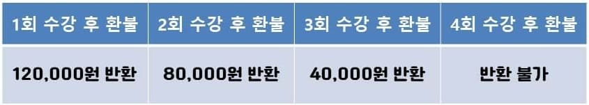 - 교습 시작 후: 거의 한자리에 남아있는 금액만 반환됩니다.
